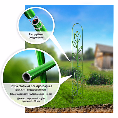 Шпалера "Тюльпан прямая", труба диаметром 1 см, разборная, зелёная эмаль.
