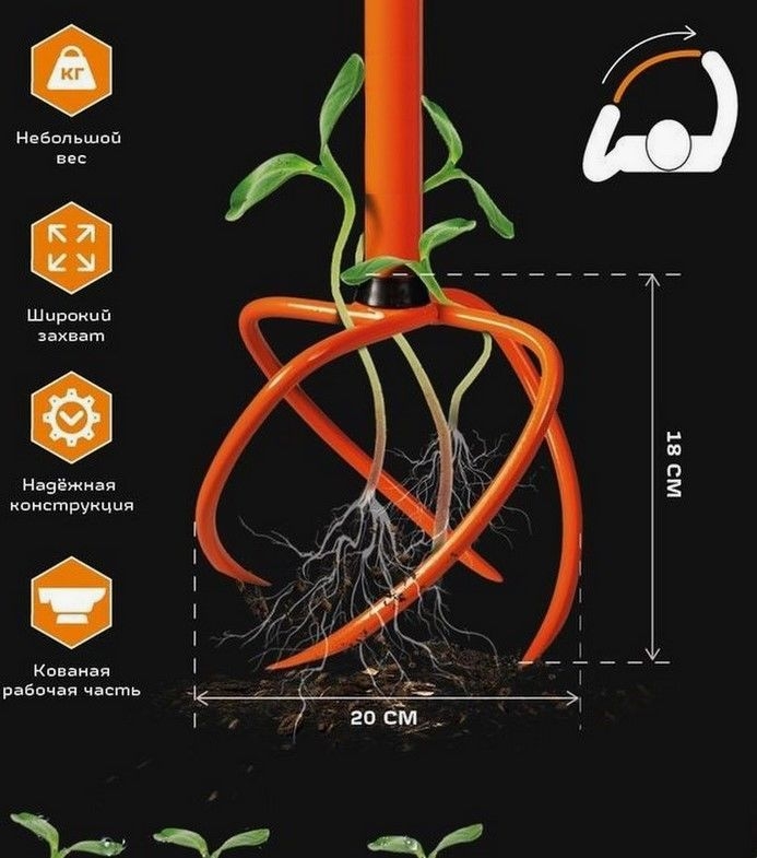 Ручной культиватор облегчит все работы по рыхлению и прополке почвы. Полукруглые зубцы сделаны из прочной и легкой кованой стали. Они не задевают плодородный слой земли, сохраняя ее структуру, баланс влаги и микроорганизмов. Культиватор удаляет ненужные травы без повреждения корней "культурных" растений, разрыхляет утрамбованную почву.