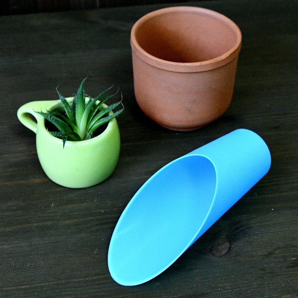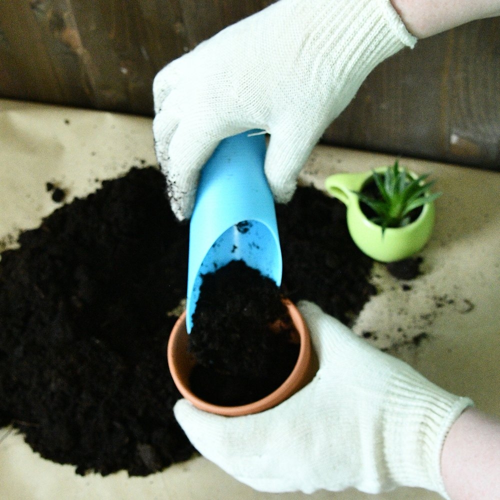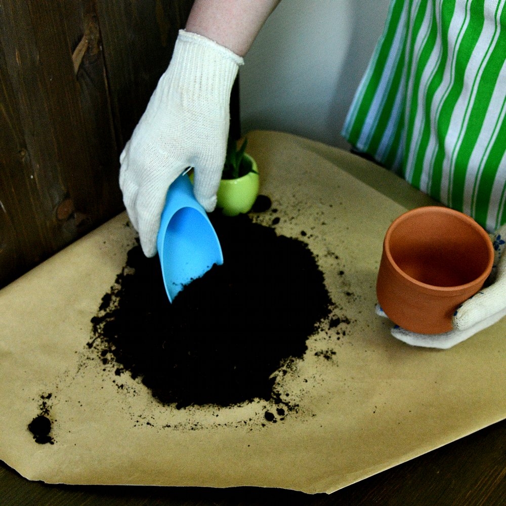Совок предназначен для посадки и пересадки садовых и декоративных домашних растений. С его помощью удобно не только насыпать грунт, дренаж и удобрения, но и утрамбовывать почву оборотной стороной совка, что значительно облегчает и ускоряет процесс посадки.