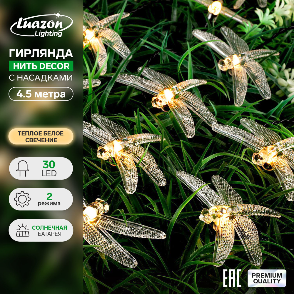 Гирлянда садовая на солнечной батарее "Стрекозы" (30 лампочек)