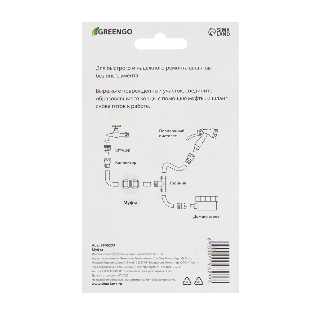 Муфта ремонтная применяется для поливочных устройств с универсальной системой быстрой фиксации.