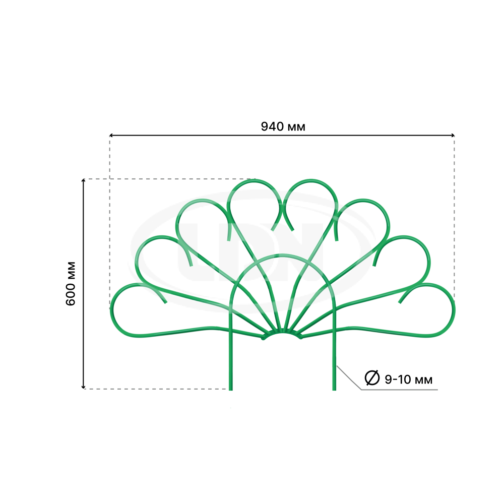 Заборчик-ограждение металлический "Павлин" 60х94 см, труба д1 см, 5 секций 4,9 м, окрашенный.
