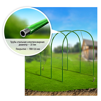 Дуги для парника металлические 4 м, 100х170 см, труба д1 см, в ПВХ оболочке 6 штук, окрашенный, в кембрике.