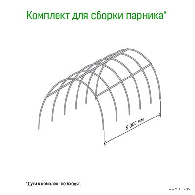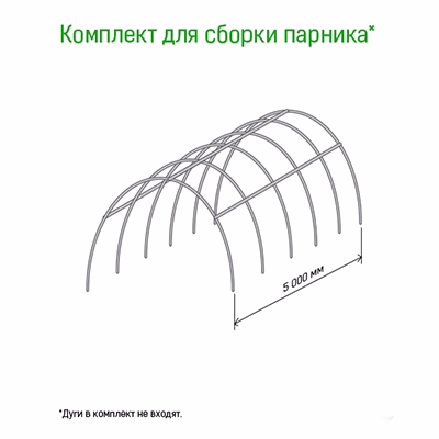 Комплект для сборки парника 5 м: трубка металлическая/ПВХ 1м д1см – 15 шт., тройник пластмассовый – 6 шт., крестовина пластмассовая – 12 шт.