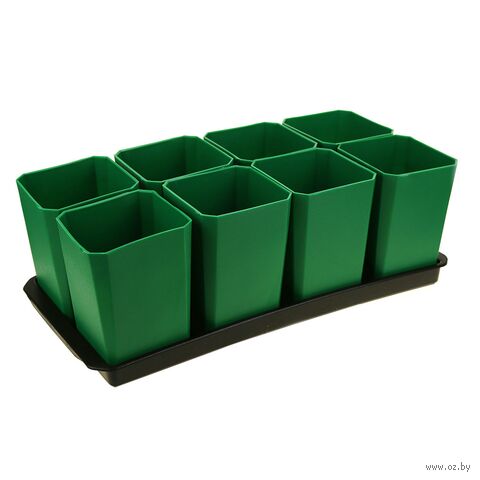 Набор для рассады пластмассовый: 8 стаканов по 0,8 л, с донышком, на поддоне, зелёный.