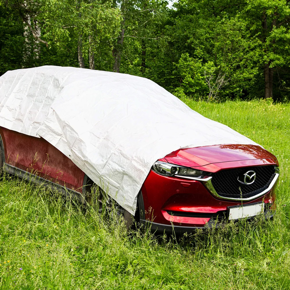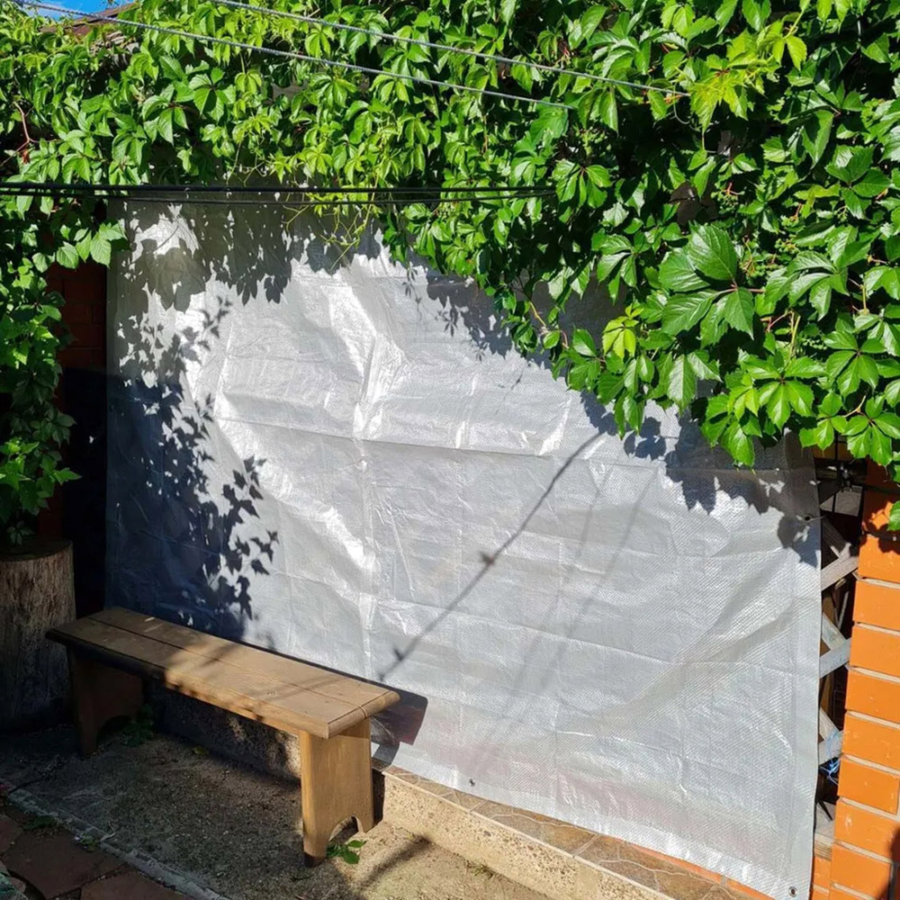 Тент из полипропилена 60г/м2, водонепроницаемый, на люверсах, серый.