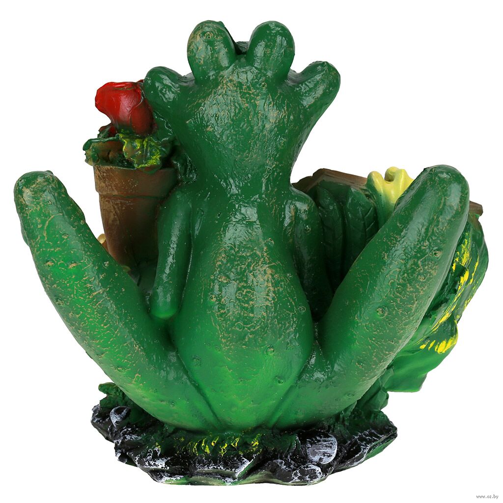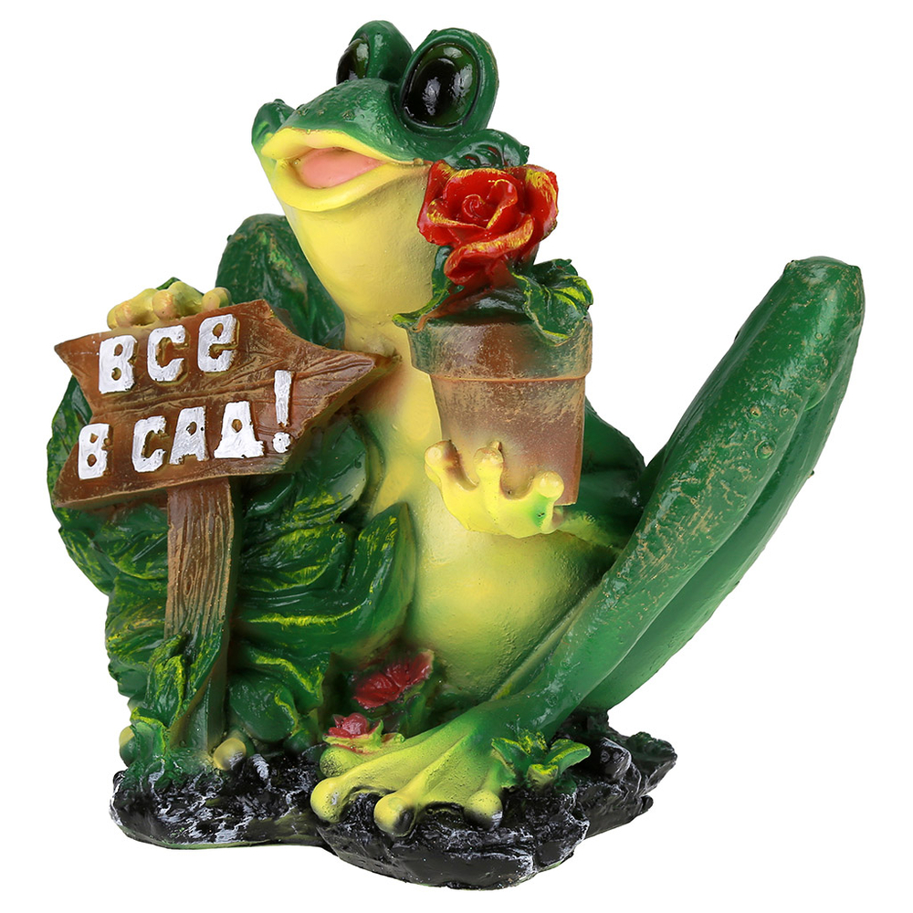 Скульптура-фигура для сада из полистоуна "Лягушка с табличкой сидит "Все в сад".