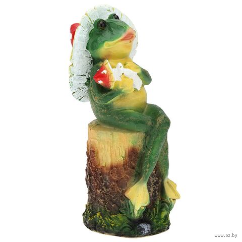 Скульптура-фигура для сада из полистоуна "Лягушка в шляпе на пне".