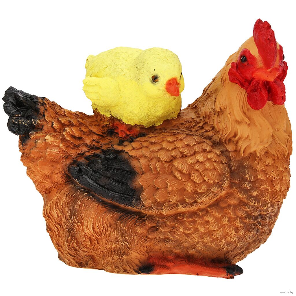 Скульптура-фигура для сада из полистоуна "Курица Наседка с цыпленком".