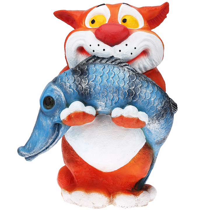 Скульптура-фигура для сада из полистоуна "Кот с щукой".