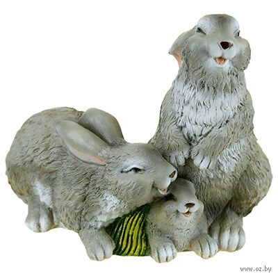 Скульптура-фигура для сада из полистоуна "Зайцы семья".