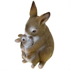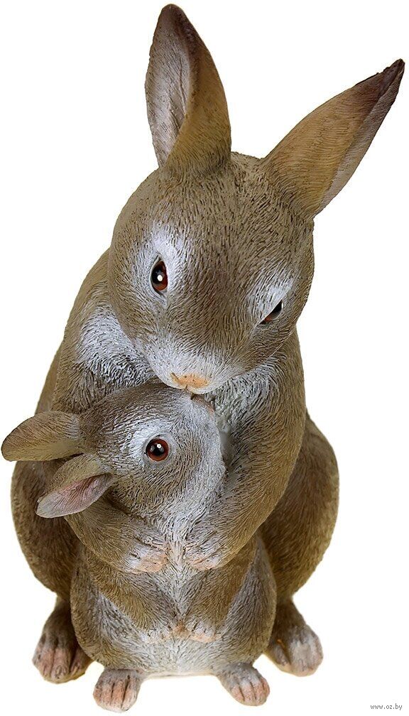 Скульптура-фигура для сада из полистоуна "Зайка с зайченком сидячие".
