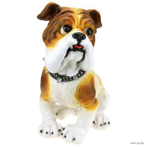 Скульптура-фигура для сада из полистоуна "Бульдог в ошейнике маленький".