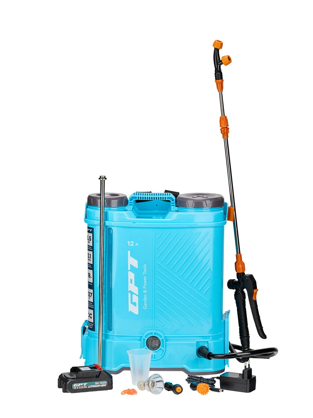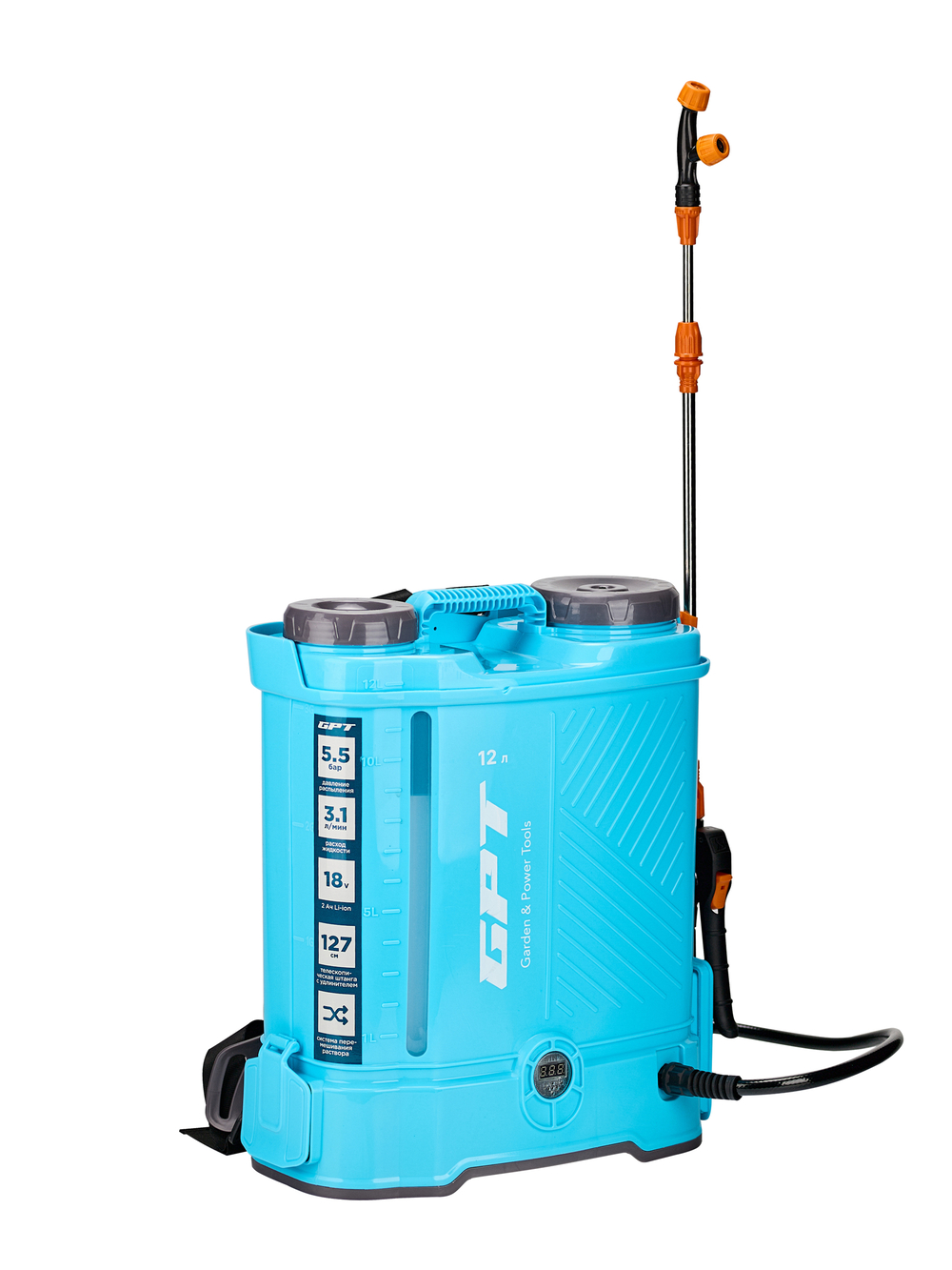 GPT ZFB-12 – это инновационный аккумуляторный опрыскиватель с расширенной комплектацией, идеально подходящий для ухода за садом, огородом, теплицами и приусадебными участками. Оснащен встроенной системой перемешивания раствора, что позволяет готовить рабочую смесь прямо в баке объёмом 12 литров. Смарт-дизайн включает смотровое окно с литражной шкалой и мерный стакан.