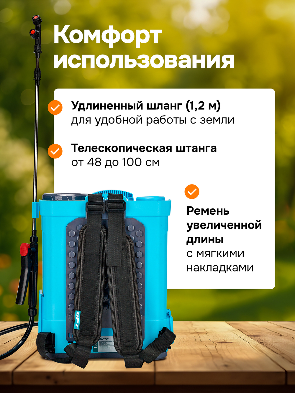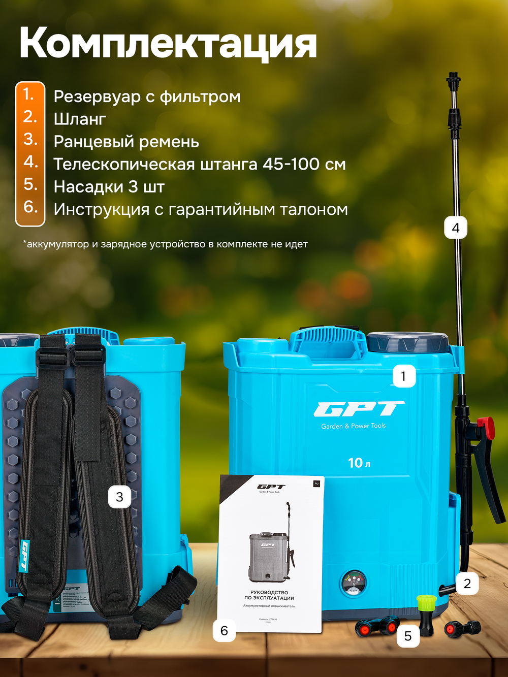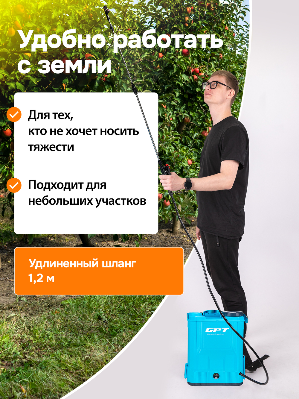 ZFB-10 справится с задачами по обработке, защите и поливу растений, кустарников и плодовых деревьев.