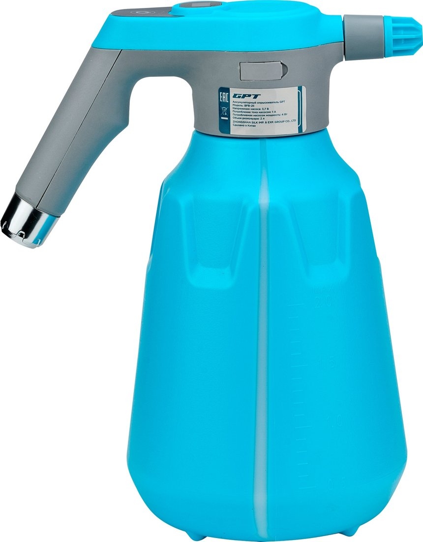 Аккумуляторный опрыскиватель GPT ВFB-2li 2 л – это лёгкий и мощный помощник для вашего сада, дачи и дома. Этот универсальный садовый опрыскиватель станет отличным решением для ухода за растениями, дезинфекции и уборки.