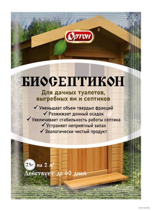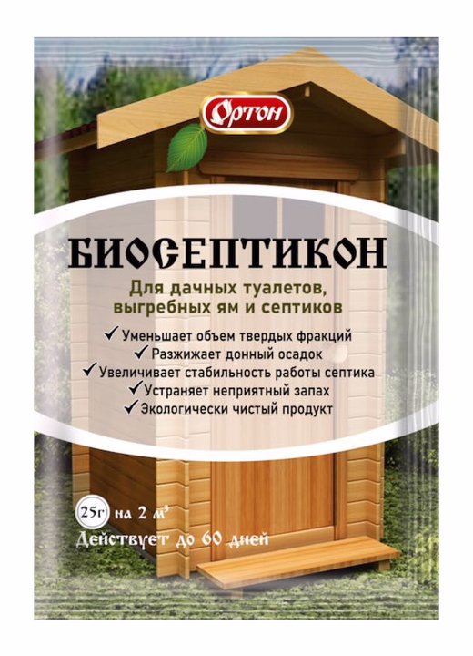 Биологический препарат для разложения фекальных и хозяйственно-бытовых стоков в локальных очистных сооружениях, септиках, выгребных ямах с накопительной ёмкостью, дачных туалетах.