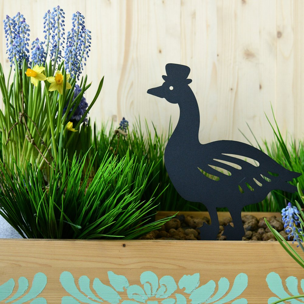 Предназначена для украшения сада, огорода, газона, клумбы или приусадебного участка. Благодаря заостренному колышку, фигурка легко втыкается в землю, а специальное отверстие в нем, дает возможность установки фигурки на стене или заборе.
