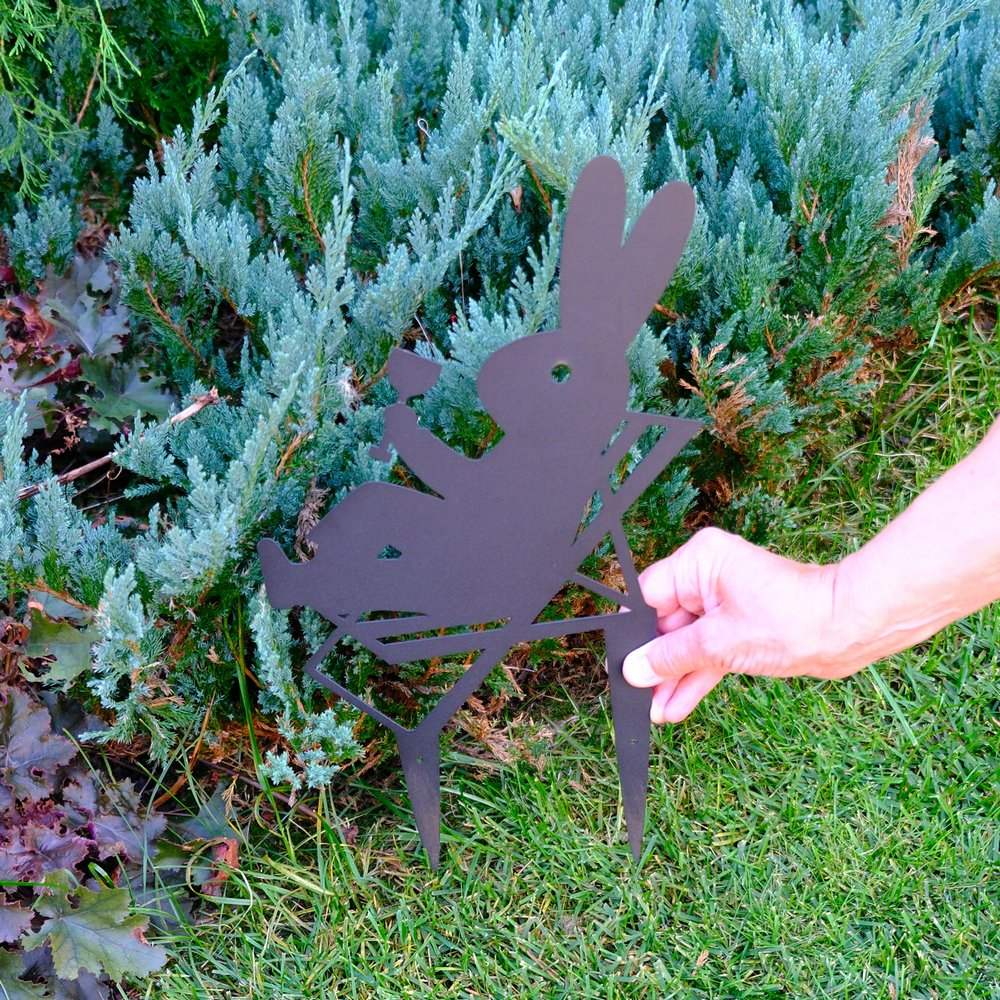 Предназначена для украшения сада, огорода, газона, клумбы или приусадебного участка. Благодаря заостренным колышкам, фигурка легко втыкается в землю, а специальные отверстия в них, дают возможность установки фигурки на стене или заборе.