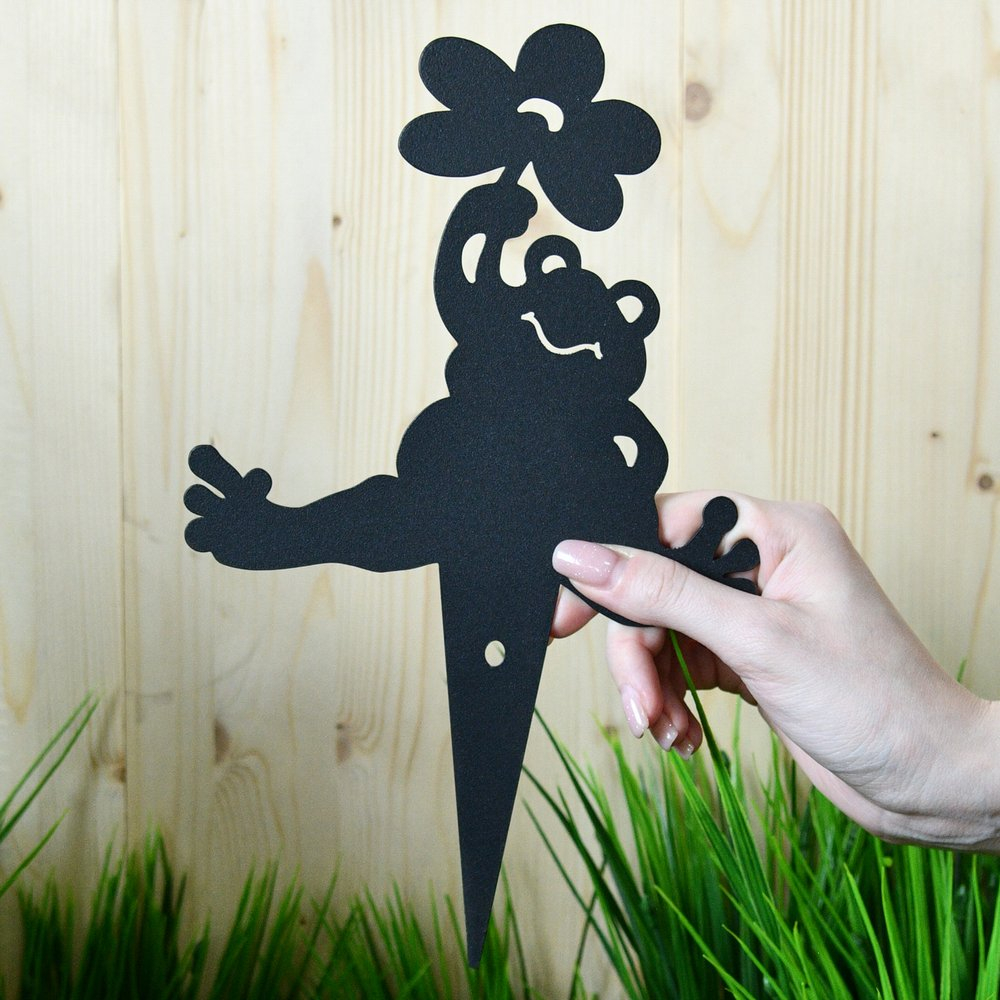 Предназначена для украшения сада, огорода, газона, клумбы или приусадебного участка. Благодаря заостренному колышку, фигурка легко втыкается в землю, а специальное отверстие в нем, дает возможность установки фигурки на стене или заборе.