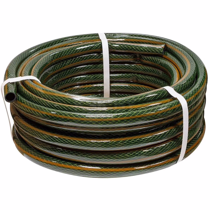 Трехслойный, армированный высокопрочной синтетической нитью шланг. Внутренний слой ПВХ непрозрачный, черный, защищает от проникновения солнечных лучей и препятствует образованию водорослей внутри тела шланга.