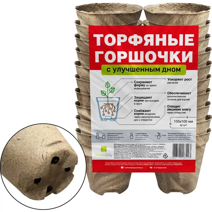Торфяные горшочки с улучшенным дном отличаются от классических тем, что их дно снабжает растения воздухом, а отверстия отводят лишнюю влагу.