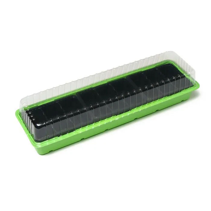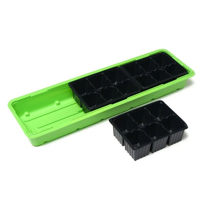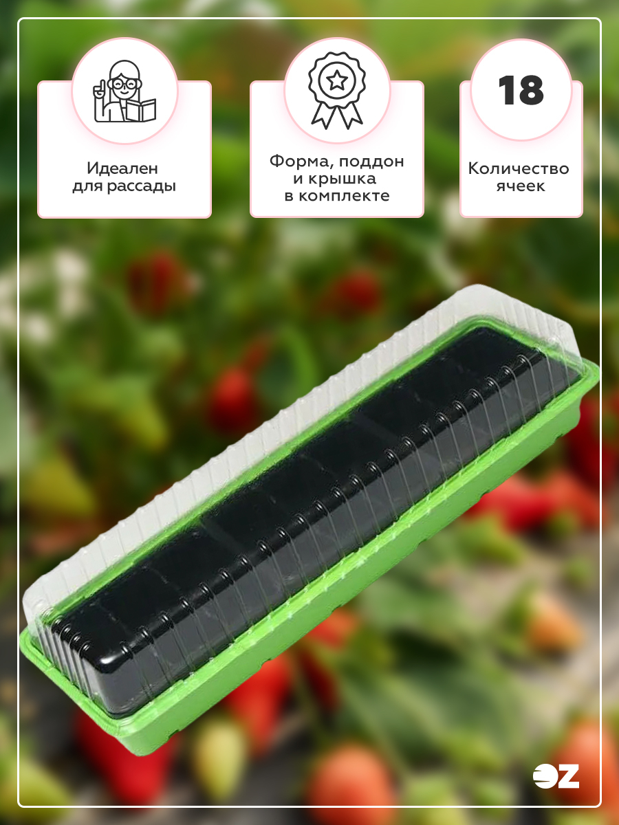 В комплекте: форма с ячейками под рассаду, поддон для стока лишней воды при поливе и крышка для создания благоприятного микроклимата для быстрой всхожести и роста рассады.