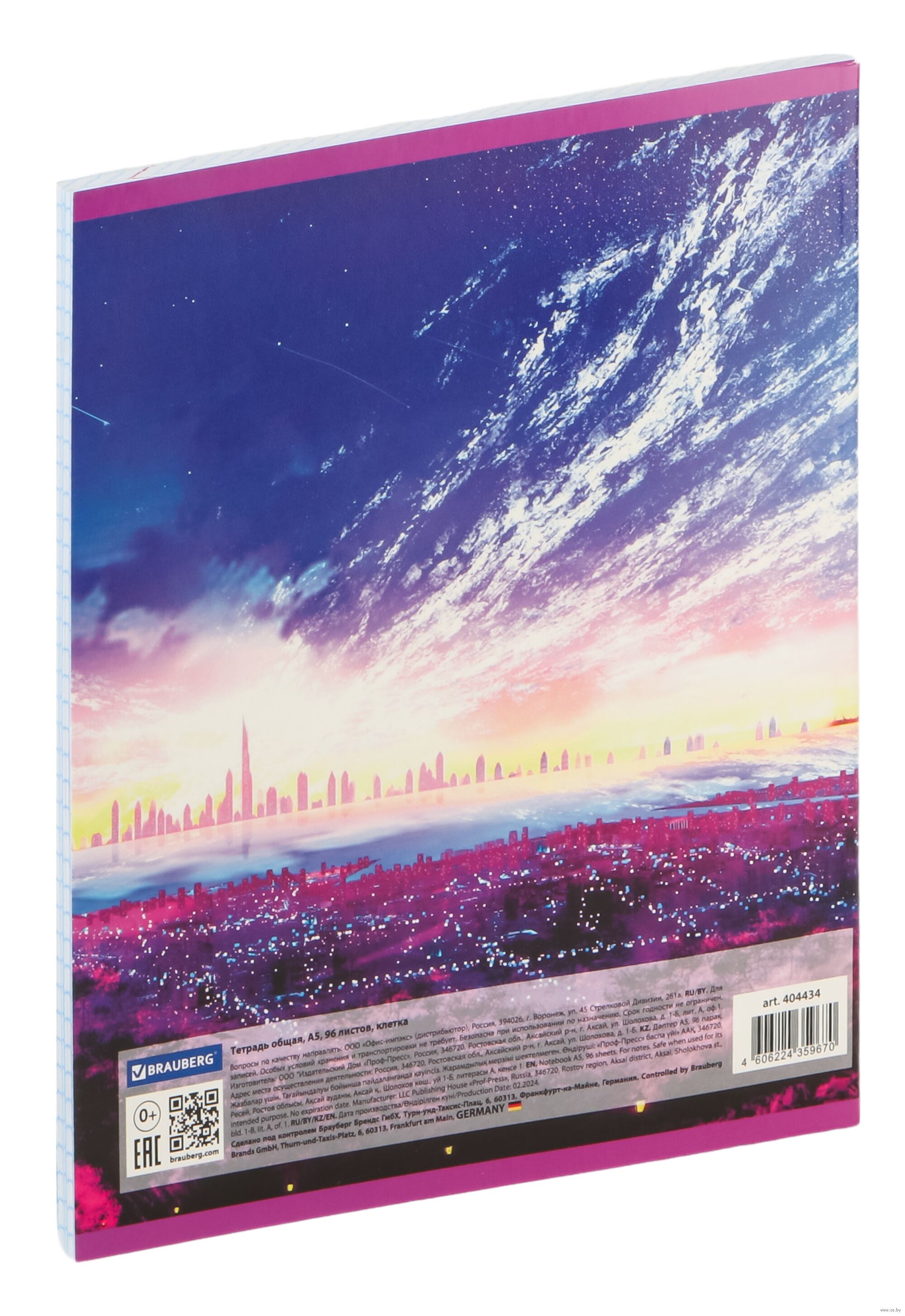 Внутренний блок содержит 96 листов офсетной бумаги плотностью 65 г/м2. Обложка изготовлена из мелованного картона со спецэффектом TWIN-лак. Линовка – клетка с полями. Скрепка надежно скрепляет листы между собой. Белизна – 100%. Формат А5.
