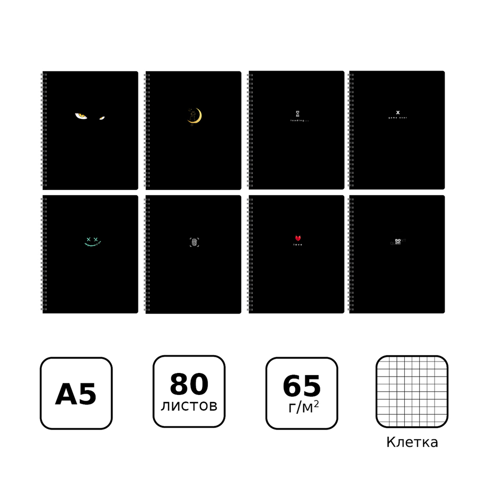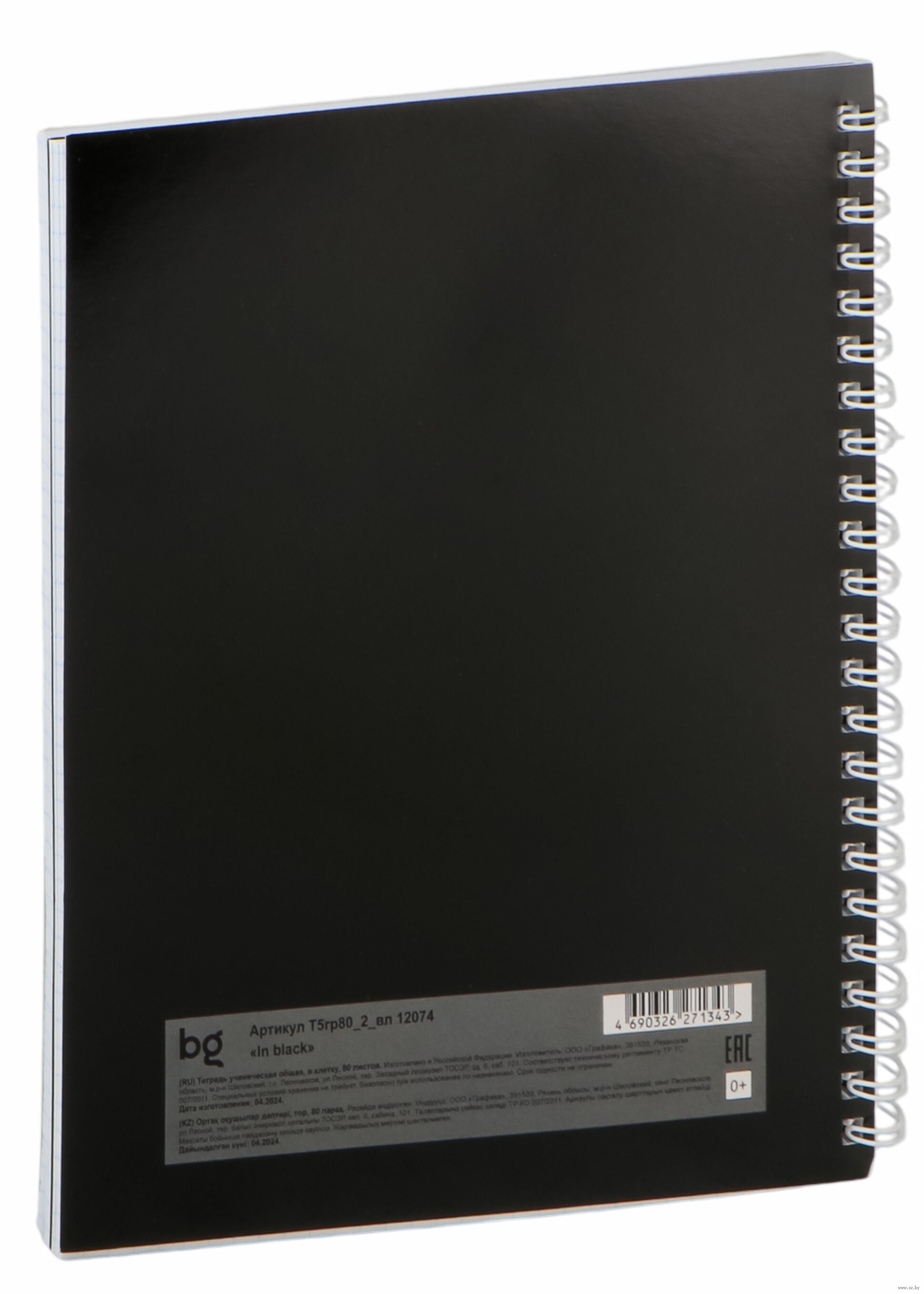 Тетрадь общая BG серии In black формата А5 (165х205 мм) на гребне состоит из 80 листов и отлично подходит для конспектов, работы, больших записей и домашних заданий.