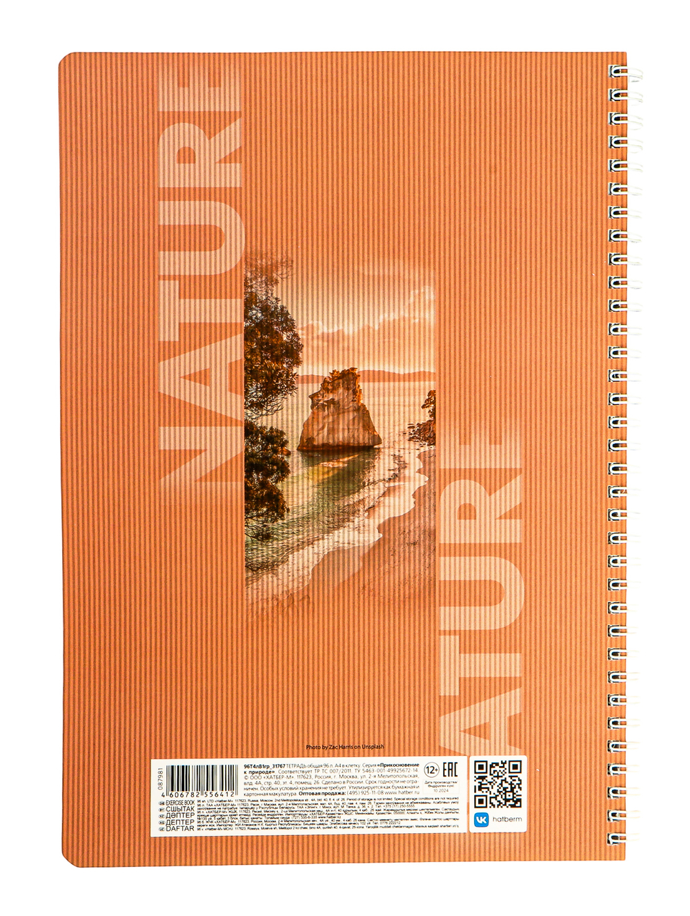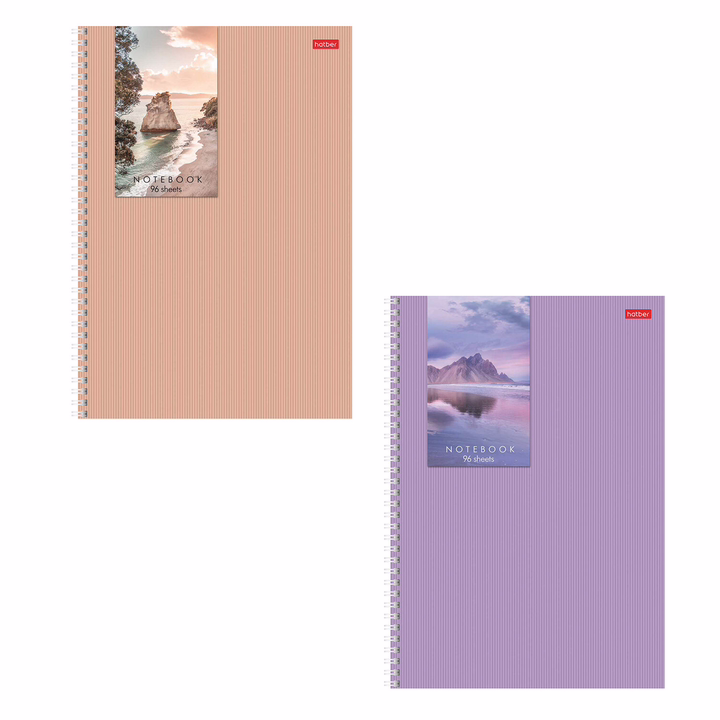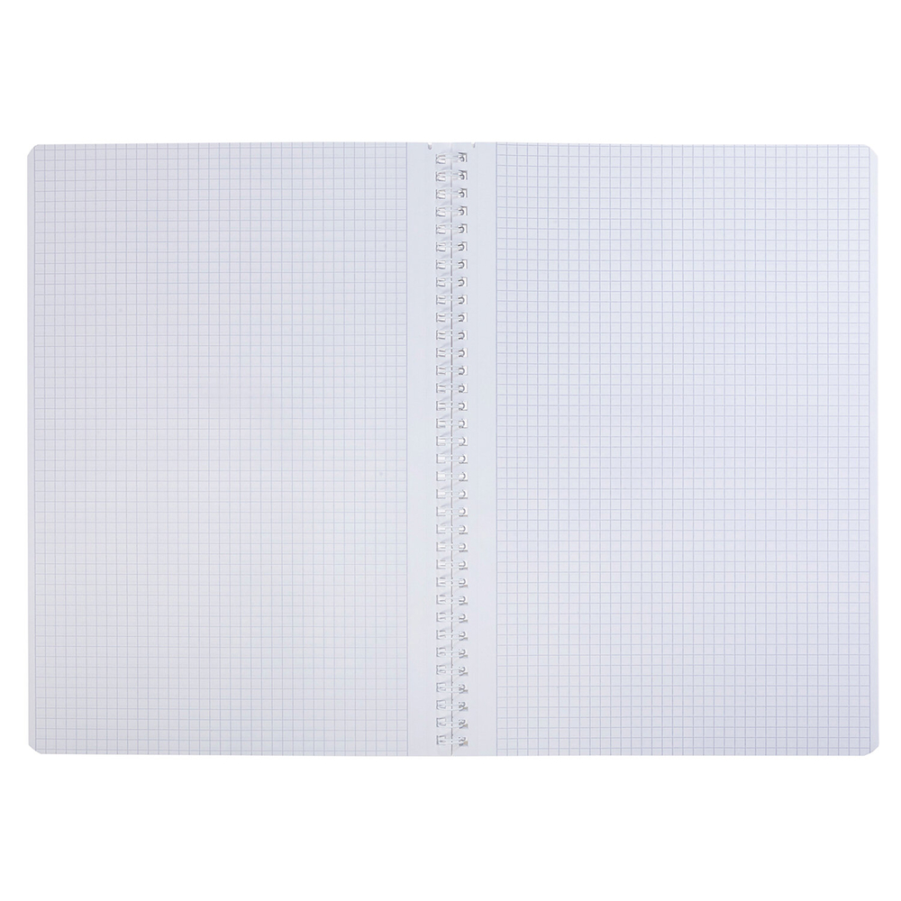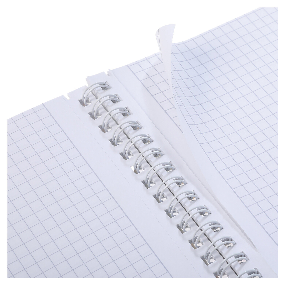 Тетрадь формата А4, 96 листов. Обложка – мелованный картон. Вид отделки – матовая ламинация. 2 дизайна в блоке. Внутренний блок – офсет 65 г/м2, клетка. Перфорация на отрыв. Скрепление – гребень.