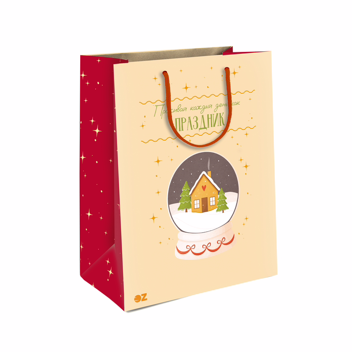 Пакет бумажный подарочный "Снежный шар" (23х18х10 см)