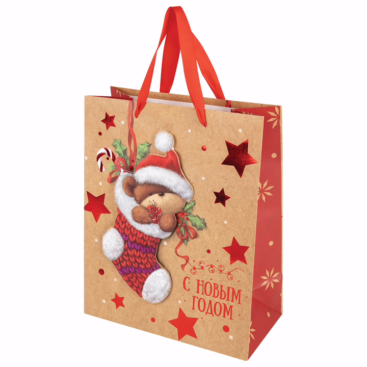 Подарочный пакет новогодний "3D Large" – отличное решение для упаковки любого презента, которое позволит легко и со вкусом оформить выбранный подарок.