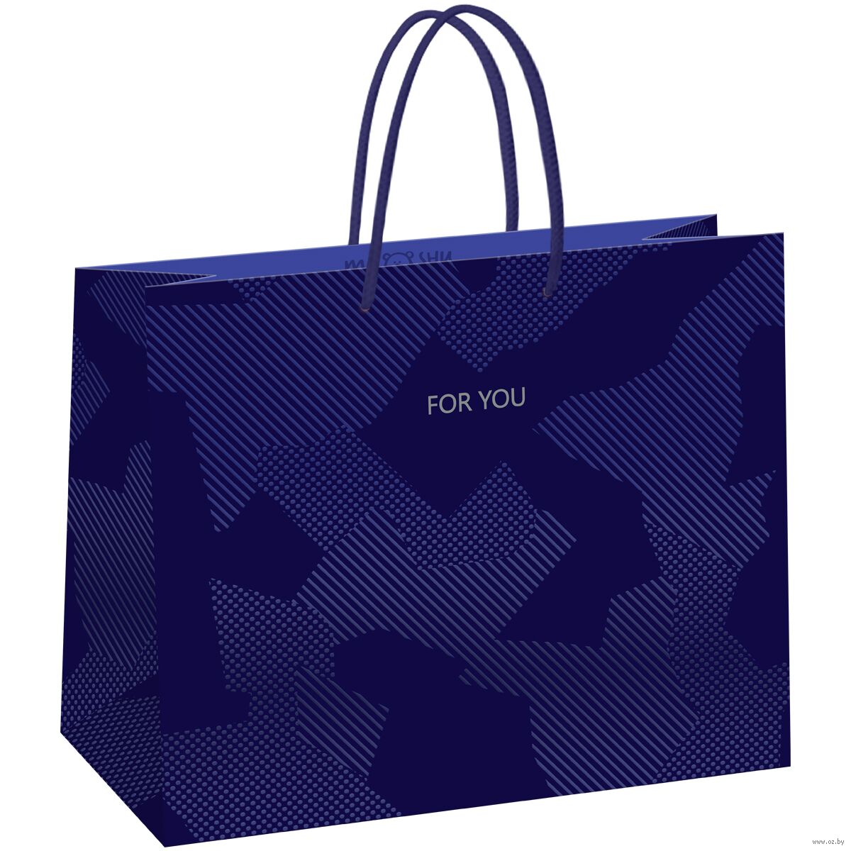 Пакет бумажный подарочный "Blue pattern" (32х26х12 см)