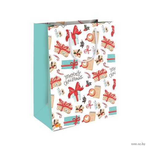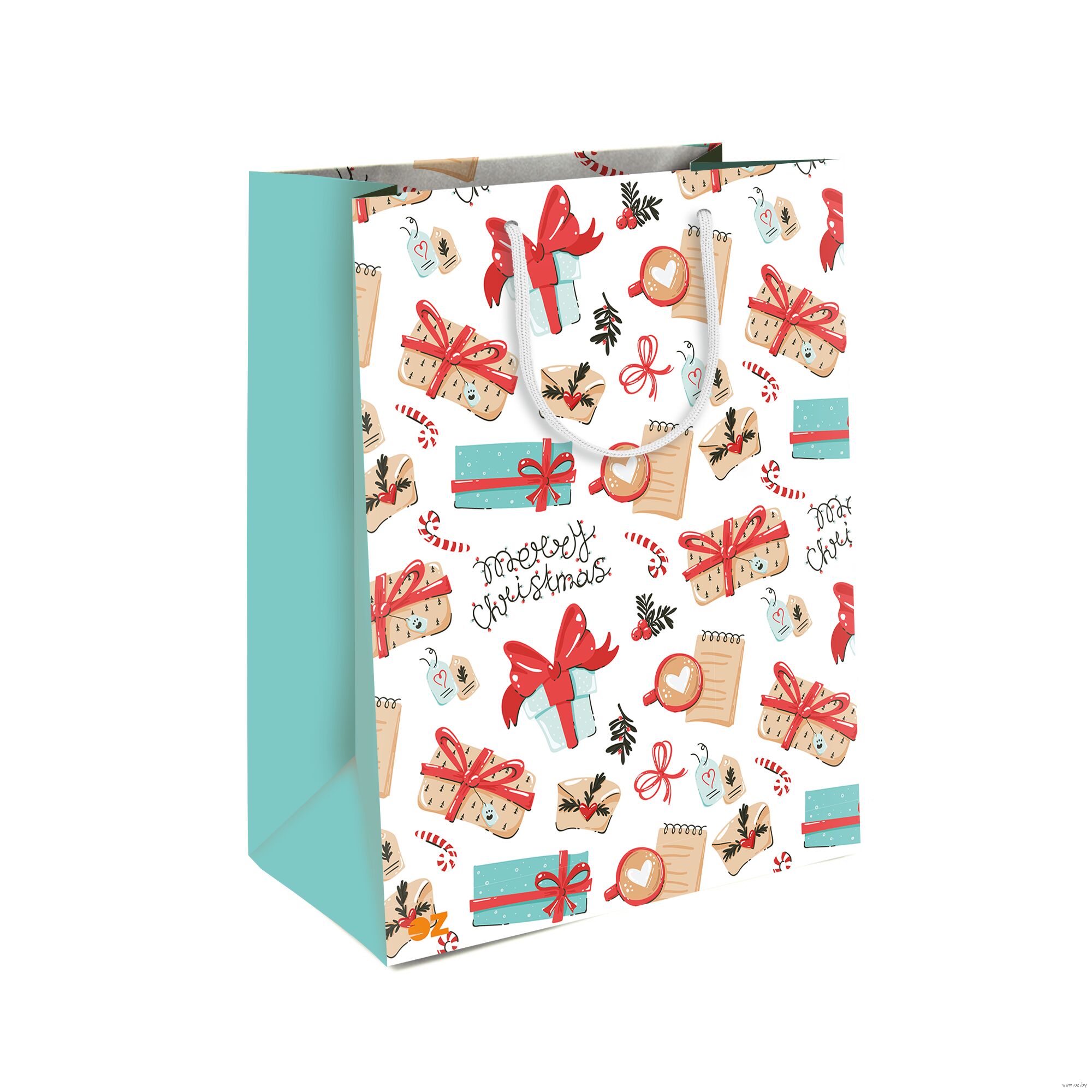 Подарочный бумажный пакет "Подарки на рождество" (23х18х10 см)