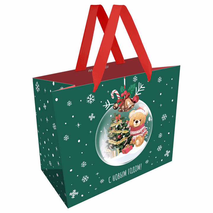 Изготовлен из плотного мелованного картона с матовой ламинацией. Дизайн пакета вдохновлен зимними праздниками и создает атмосферу волшебства и уюта.