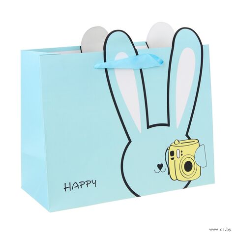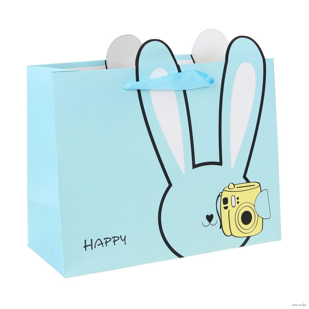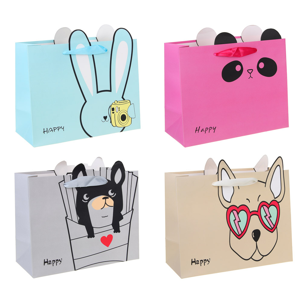 Забавный пакет с принтом в виде зверька с ушками подарит улыбки и поднимет настроение имениннику.