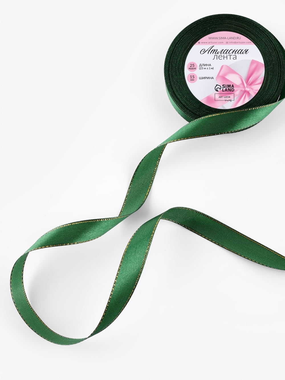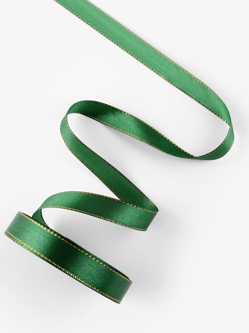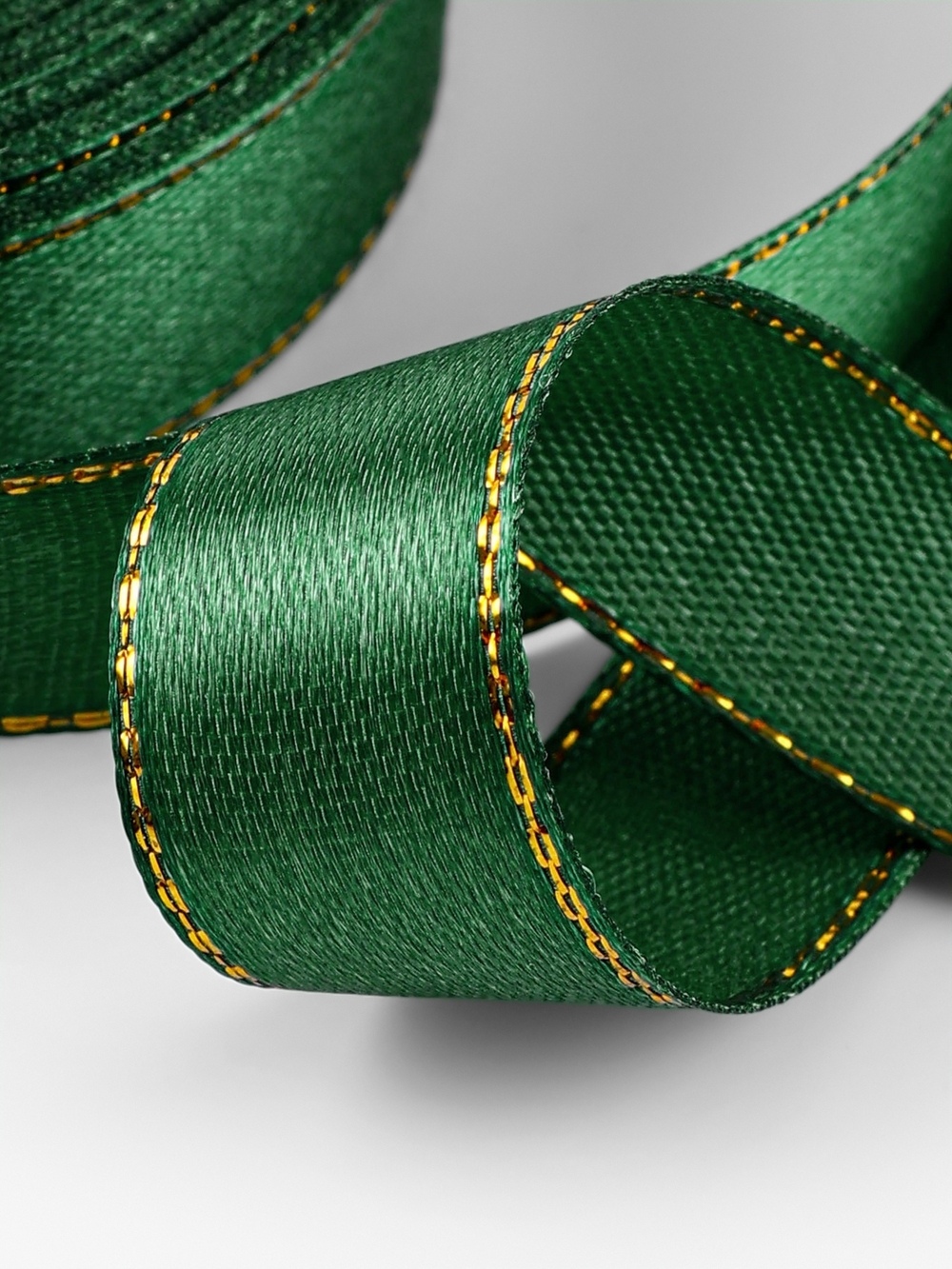 Изысканная зелёная лента с золотым блеском станет великолепным дополнением ваших творческих проектов.