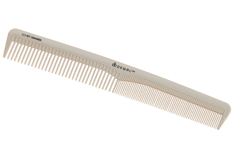 Расческа с редкими и частыми зубцами может стать хорошим дополнением в арсенале парикмахерских инструментов. Зубчики расположены в один ряд, но на разном расстоянии друг от друга.