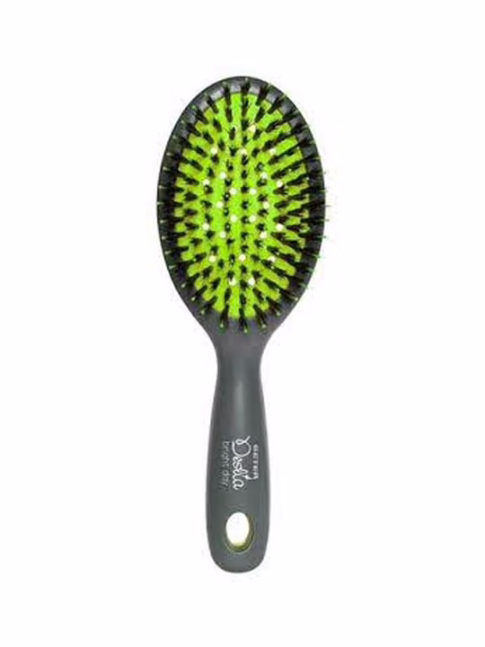 Массажная расческа, объединившая нейлоновые зубчики и натуральную щетину кабана, помогает бережно распутать волосы, не вызывая повреждений и защищая волосы от выпадения, и вернуть им блеск.