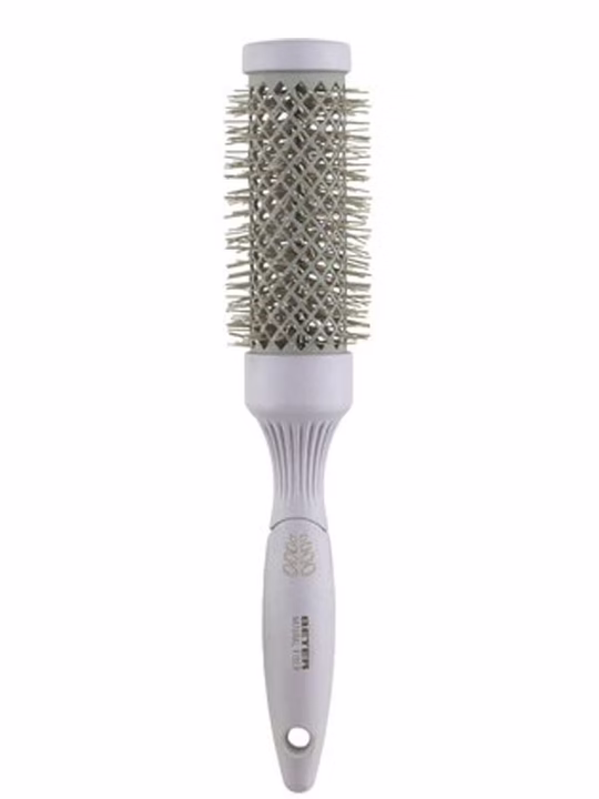 Круглая щетка для укладки волос с керамическим покрытием разработанa для сушки и укладки волос. Позволяет быстро уложить волосы с максимальной заботой о них. Помогает равномерно распределять тепло, дарит антистатический эффект и придает волосам блеск и мягкость.