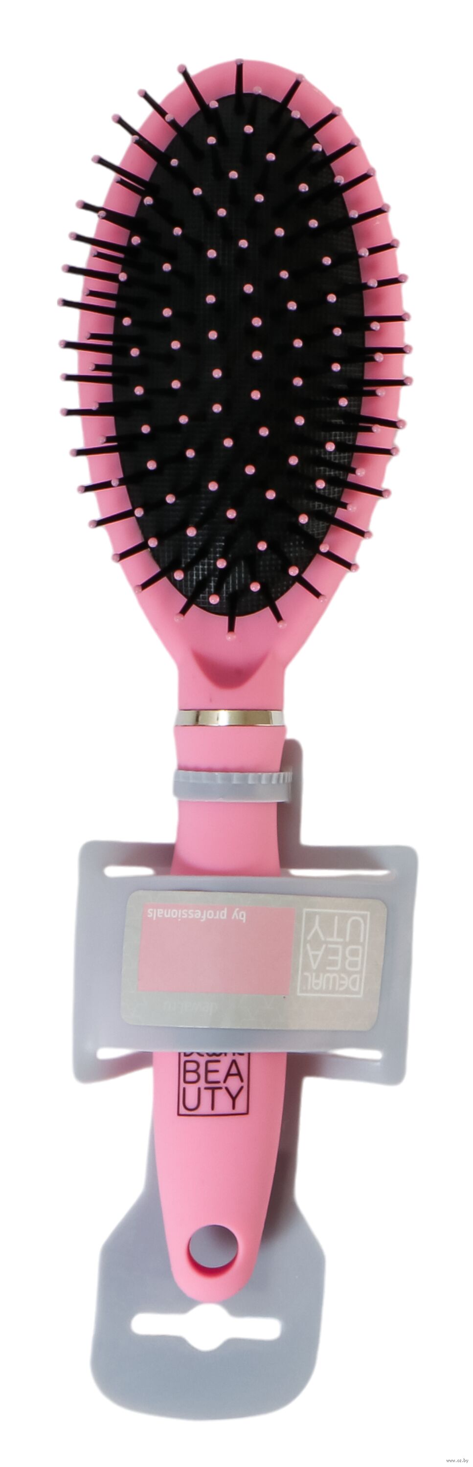Массажная щетка Dewal Beauty из серии "Клубничная глазурь" – выполнена в нежном розовом цвете с черными контрастными элементами, из матового гладкого пластика. Пластиковые штифты для бережного расчесывания волос. Легкая и удобная для ежедневного расчесывания волос и прикорневого объема. Щетка Dewal Beauty это отличный подарок для ваших друзей и близких.