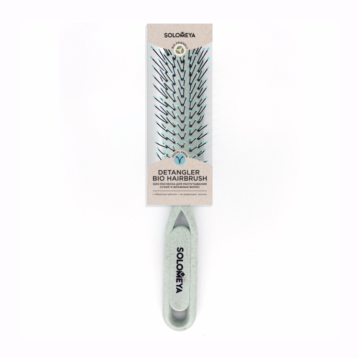 Гибкая конструкция и удобная форма ручки создает дополнительный комфорт при использовании, а компактность позволяет брать расческу с собой и использовать где угодно. Массажная расческа изготовлена из экологически чистого биоразлагаемого материала BIO-FRIENDLY, а именно – из натуральной пшеницы. Био-расческа подходит для любого типа волос: прямых, кудрявых, сухих, влажных, а также нарощенных или ослабленных – она легко распутывает и деликатно расчесывает даже самые непослушные волосы.