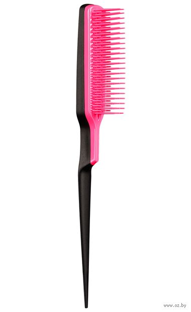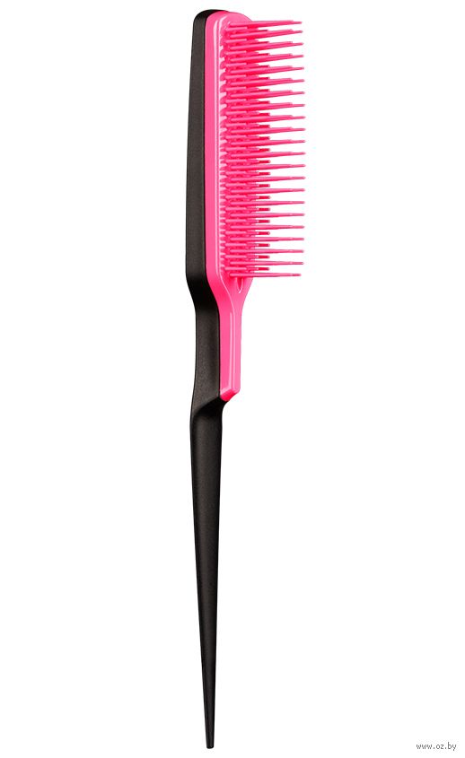 Tangle Teezer Back-Combing Hairbrush – расчёска для создания начеса. Преимущество расчёски в её зубчиках: благодаря их уникальному двухуровневому строению и расположению, волосы не спутываются и не повреждаются во время создания начеса, а специальная форма в виде бутылочек позволяет сохранить гладкость волос. Волосы становятся объемными, сохраняют свой естественный блеск и эластичность. Специальная ручка (хвостик) удобна для разделения волос на ровные пряди. Расческа Tangle Teezer Back-Combing Hairbrush представлена в черно-розовом цвете.