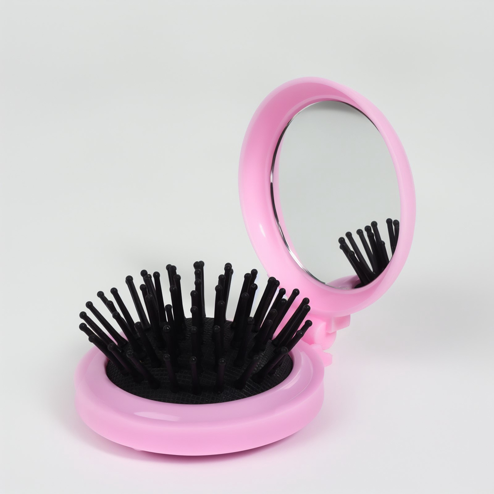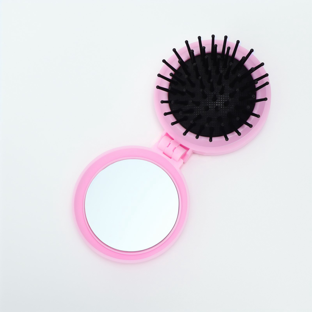 Расческа массажная для волос "С зеркалом. Розовая" (6,5 см)