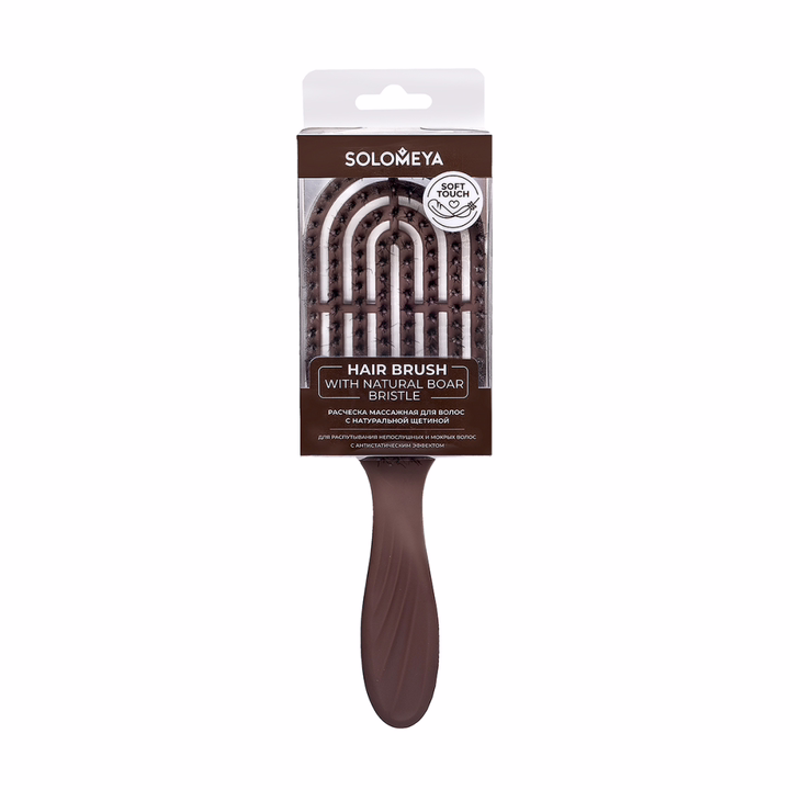 Расческа для укладки и распутывания непослушных и мокрых волос от британского бренда Solomeya станет незаменимым аксессуаром. Зубчики с натуральной щетиной делают расчёсывание комфортным и безопасным. Преимущества: Одним движением распутывает волосы, дарит им блеск и гладкость. Зубчики из полимерной смолы оказывают массажный эффект, улучшая кровообращение и укрепляя волосы. Удобные отверстия позволяют равномерно продувать волосы во время сушки и укладки феном.