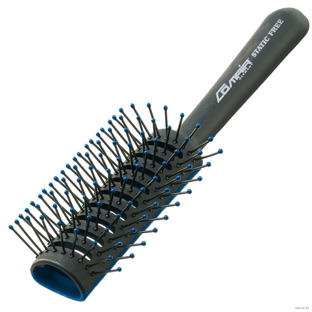 Щетка с антистатическим эффектом, туннельная, односторонняя, продувная, черно-синяя. Сделана из безопасного пластика, с нейлоновыми штырьками. Легко справляется с температурной нагрузкой во время использования вместе с феном любой мощности.