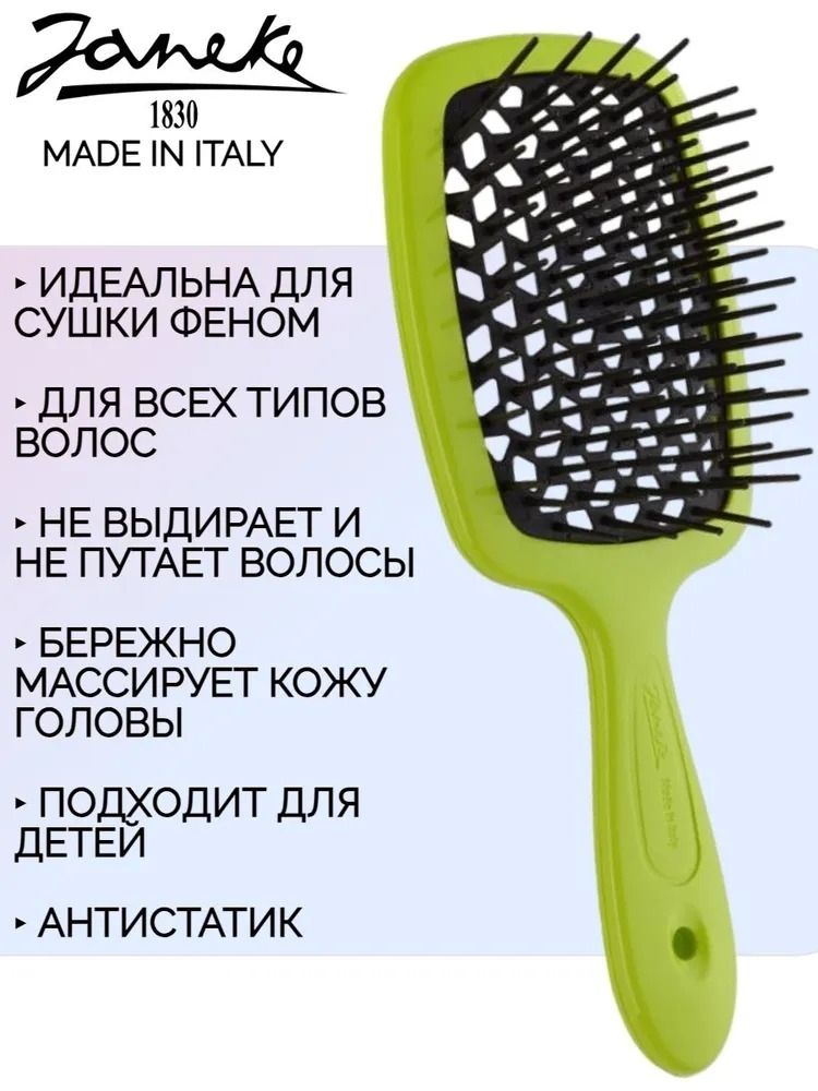Superbrush – это уникальная массажная щетка с запатентованной технологией, которая подойдет для ухода за волосами всех типов и детскими локонами. Запатентованная перфорация на зубчиках не вырывает волосы, а бережно расчесывает их по всей длине, что уменьшает травматичность волос и сохраняет их густоту, подходит для мокрых волос. Специально закругленные на краях зубчики расчески предупреждают травмирование эпидермиса.
