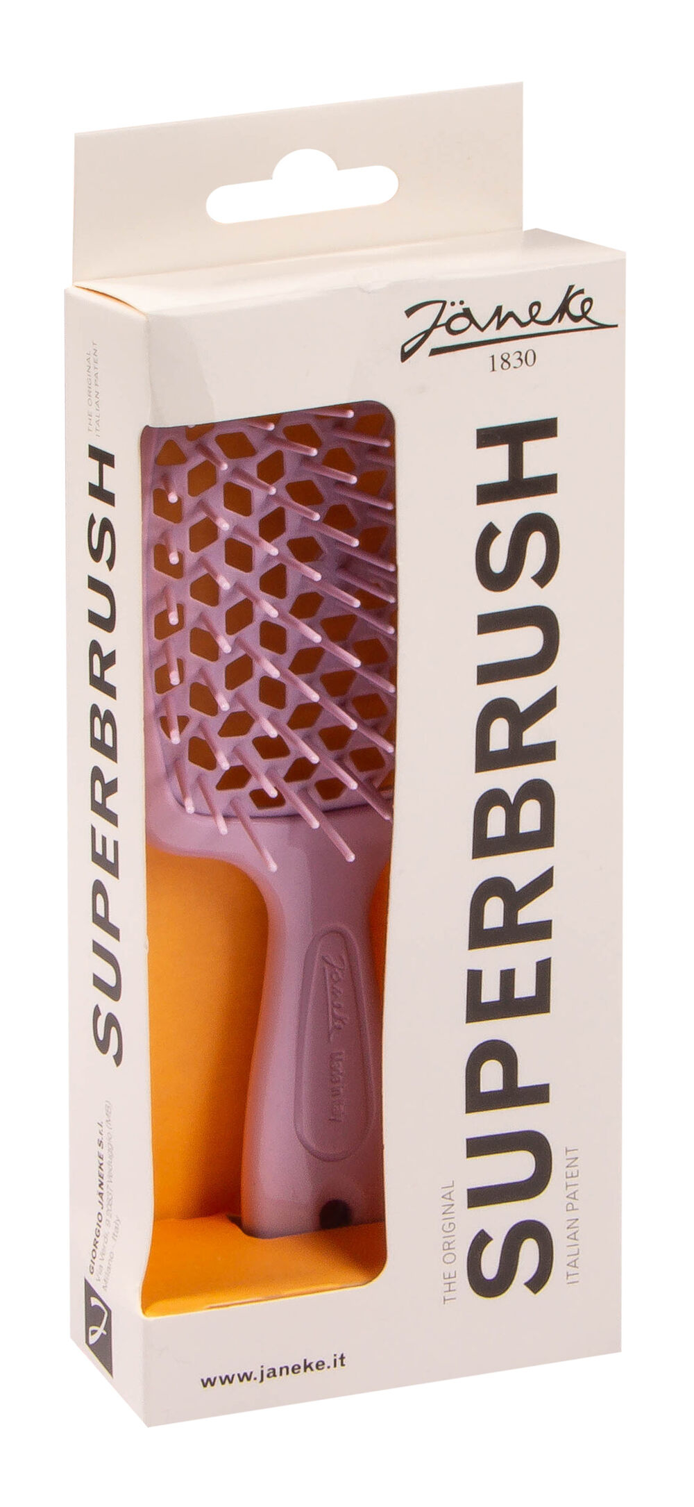 Superbrush – это уникальная массажная щетка с запатентованной технологией, которая подойдет для ухода за волосами всех типов и детскими локонами. Запатентованная перфорация на зубчиках не вырывает волосы, а бережно расчесывает их по всей длине, что уменьшает травматичность волос и сохраняет их густоту, подходит для мокрых волос. Специально закругленные на краях зубчики расчески предупреждают травмирование эпидермиса.
