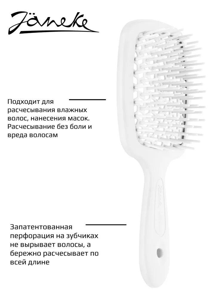 Superbrush – это уникальная массажная щетка с запатентованной технологией, которая подойдет для ухода за волосами всех типов и детскими локонами. Запатентованная перфорация на зубчиках не вырывает волосы, а бережно расчесывает их по всей длине, что уменьшает травматичность волос и сохраняет их густоту, подходит для мокрых волос. Специально закругленные на краях зубчики расчески предупреждают травмирование эпидермиса.