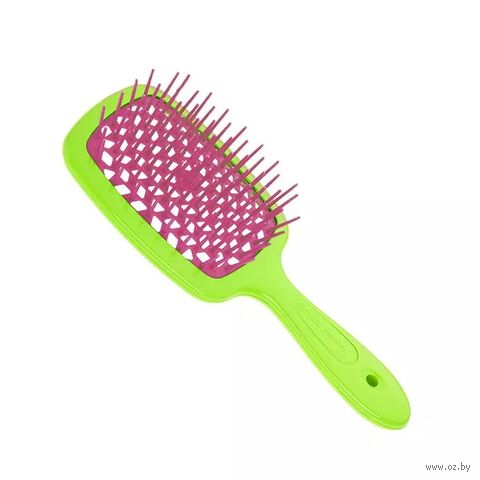 Superbrush – это уникальная массажная щетка с запатентованной технологией, которая подойдет для ухода за волосами всех типов и детскими локонами. Запатентованная перфорация на зубчиках не вырывает волосы, а бережно расчесывает их по всей длине, что уменьшает травматичность волос и сохраняет их густоту, подходит для мокрых волос. Специально закругленные на краях зубчики расчески предупреждают травмирование эпидермиса.